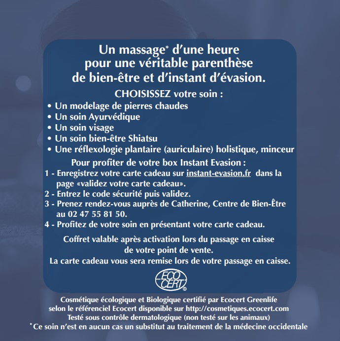 2- Il est conseillé de conserver une preuve d’achat en cas de problème d’activation. Catherine Coiffure se réserve le droit de ne pas donner suite aux réclamations d’un bénéficiaire qui aurait acquis son coffret en dehors du réseau classique de distribution des box « Instant Evasion » et notamment directement auprès d’un particulier.