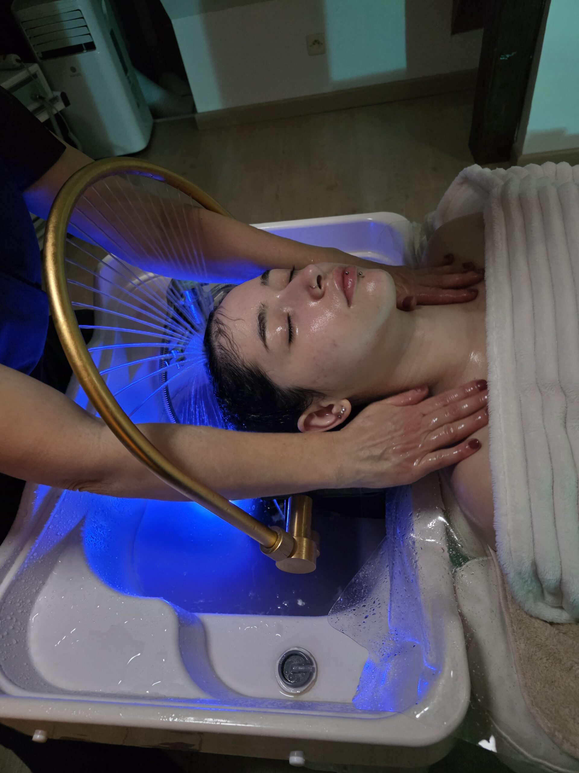 Le Head Spa Holistique Personnalisé associe techniques manuelles, chaleur, vapeur, massages énergétiques et relaxation sensorielle pour agir à la fois sur le physique, l’émotionnel et le mental.